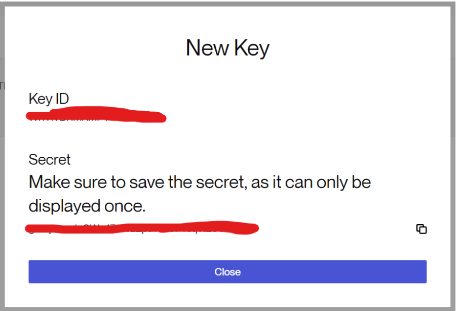 - This will issue a new key pair for you. You can use these keys to authenticate with the S3 compatible APIs.